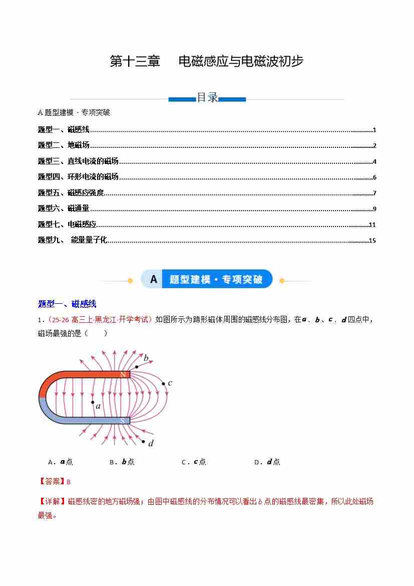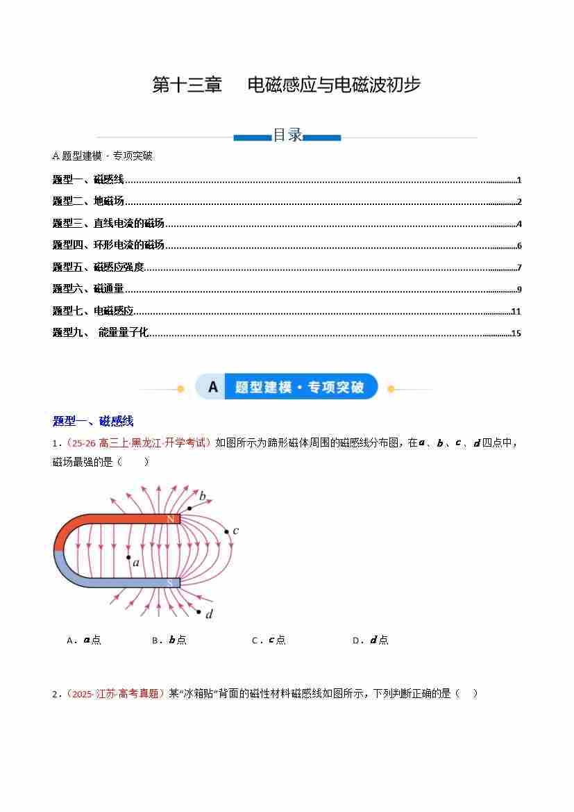 第十三章 电磁感应与电磁波初步(专项训练)(学生版)