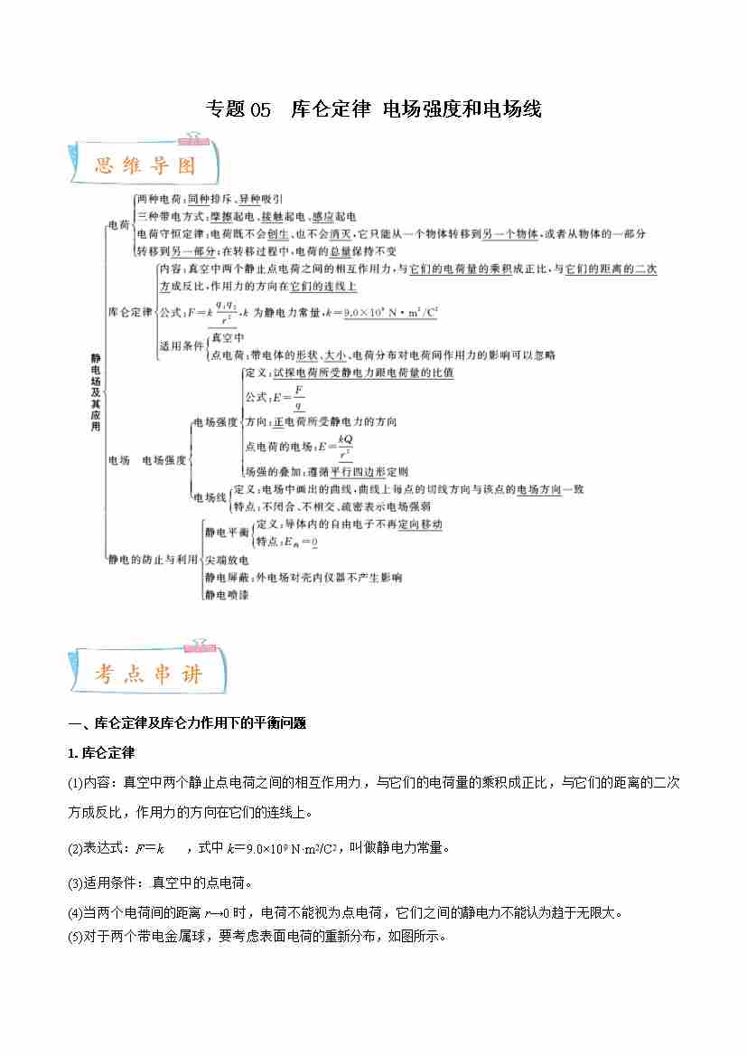 专题05 库仑定律 电场强度和电场线-高一物理下学期期中期末(人教版2019)(学生版)