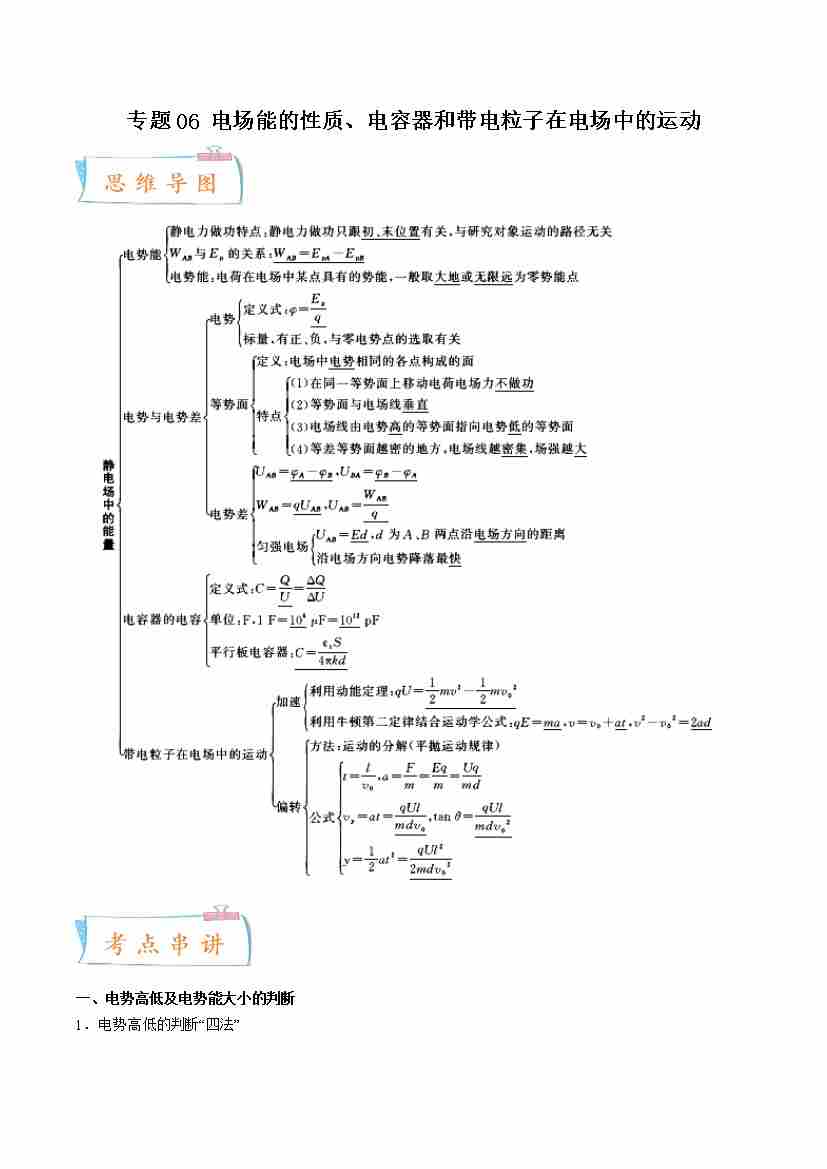 专题06 电场能的性质、电容器和带电粒子在电场中的运动-高一物理下学期期中期末(人教版2019)(学生版)
