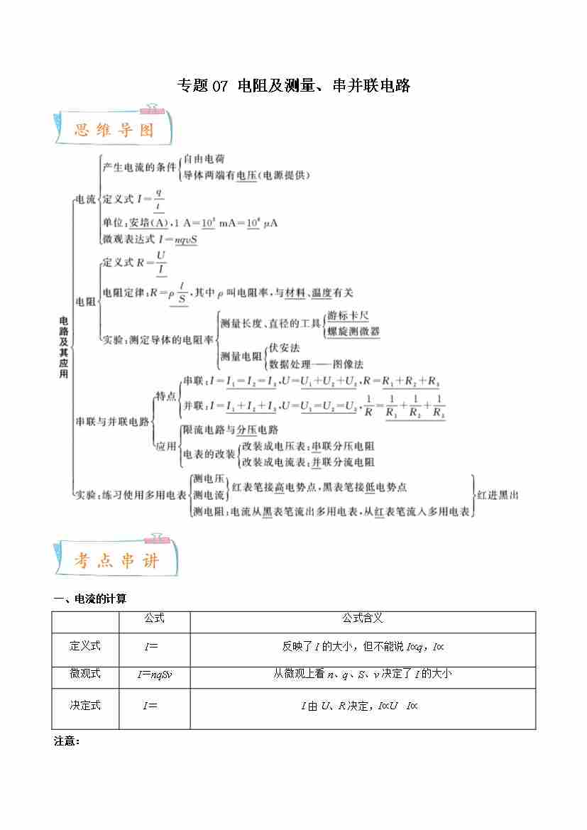 专题07 电阻及测量、串并联电路-高一物理下学期期中期末(人教版2019)(学生版)