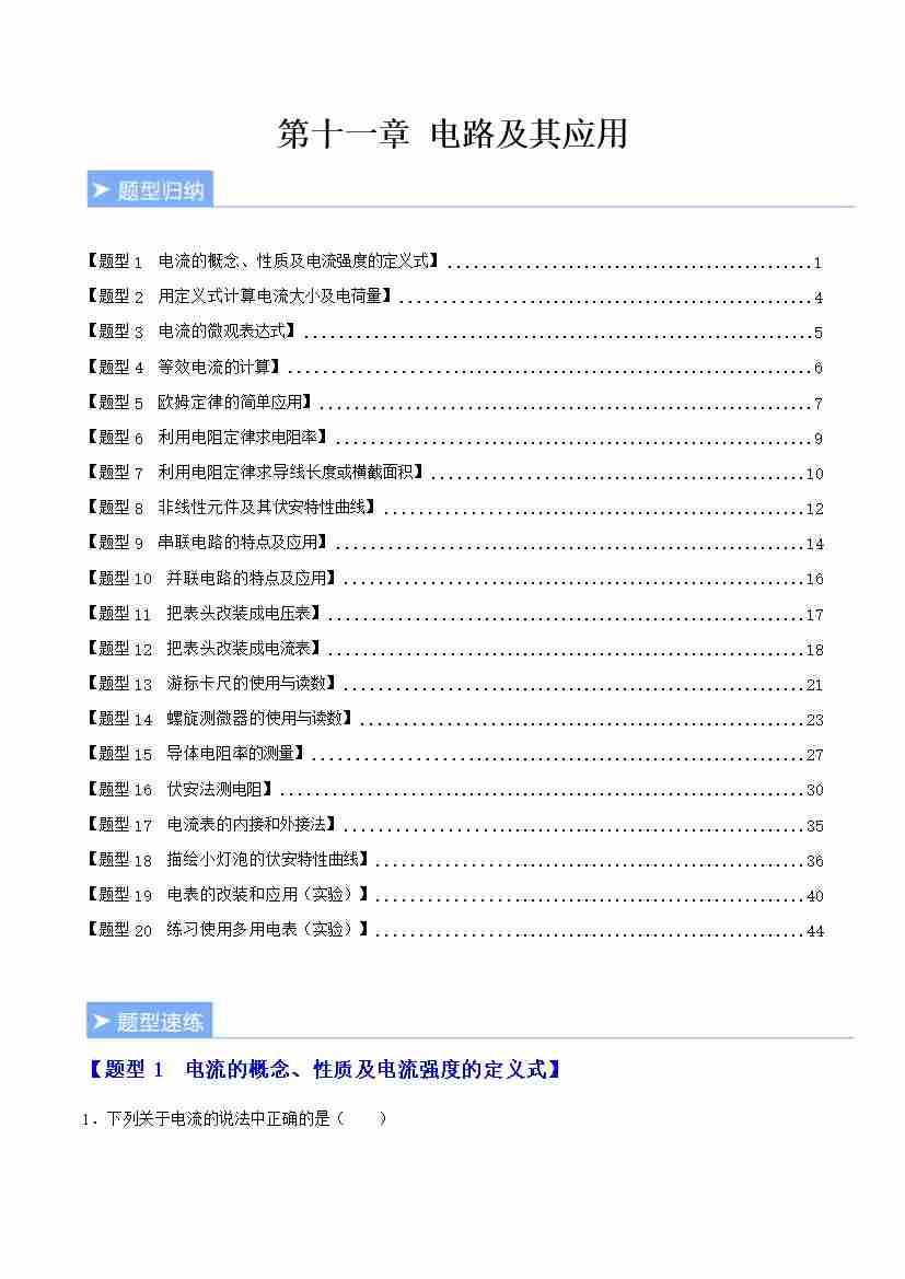 第十一章 电路及其应用(重难点训练)(教师版)