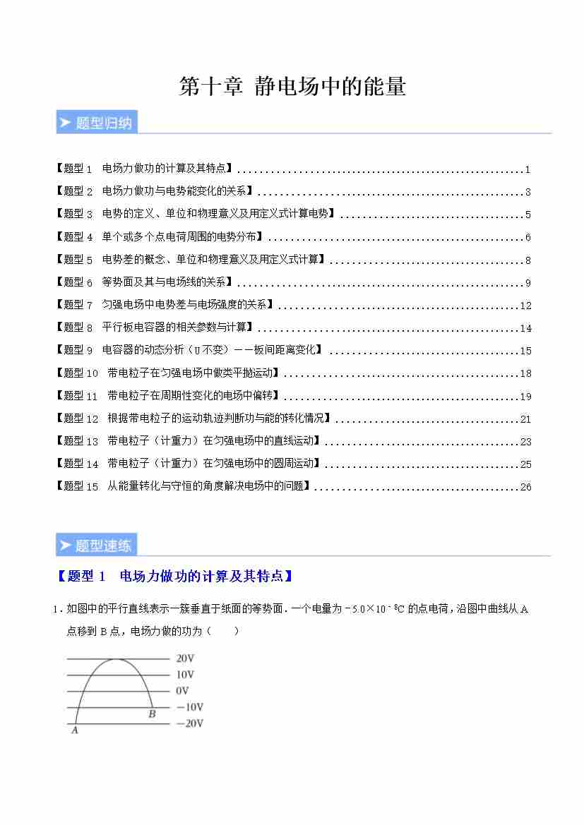 第十章 静电场中的能量(重难点训练)(学生版)