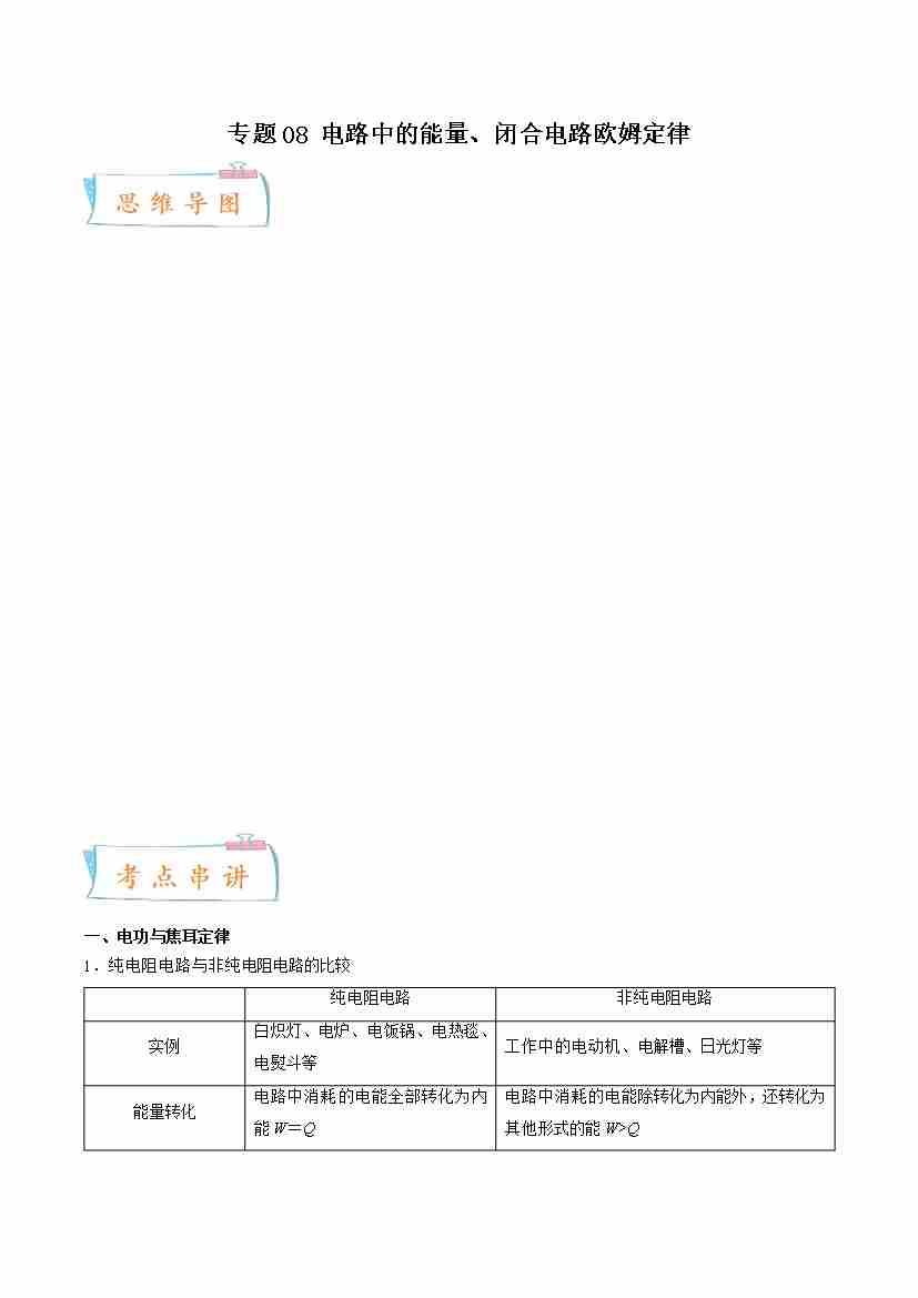 专题08 电路中的能量、闭合电路欧姆定律-高一物理下学期期中期末(人教版2019)(学生版)