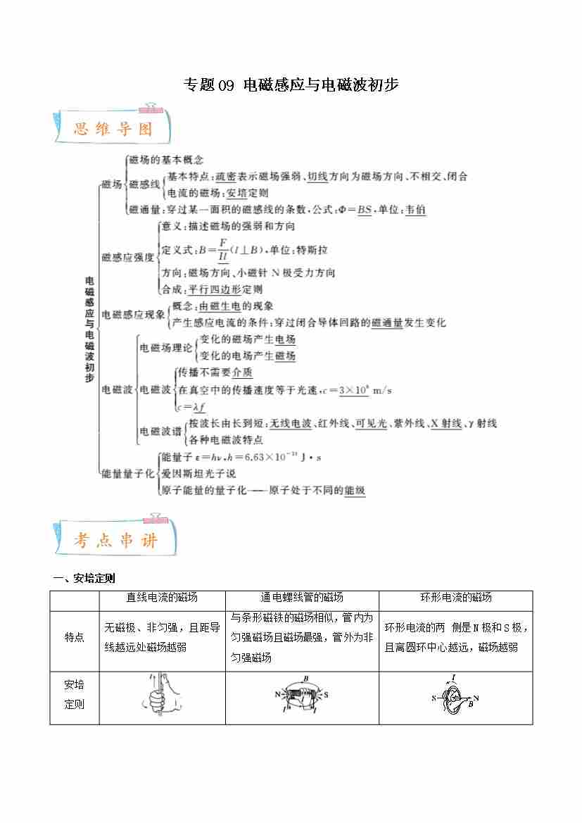 专题09 电磁感应与电磁波初步-高一物理下学期期中期末(人教版2019)(学生版)