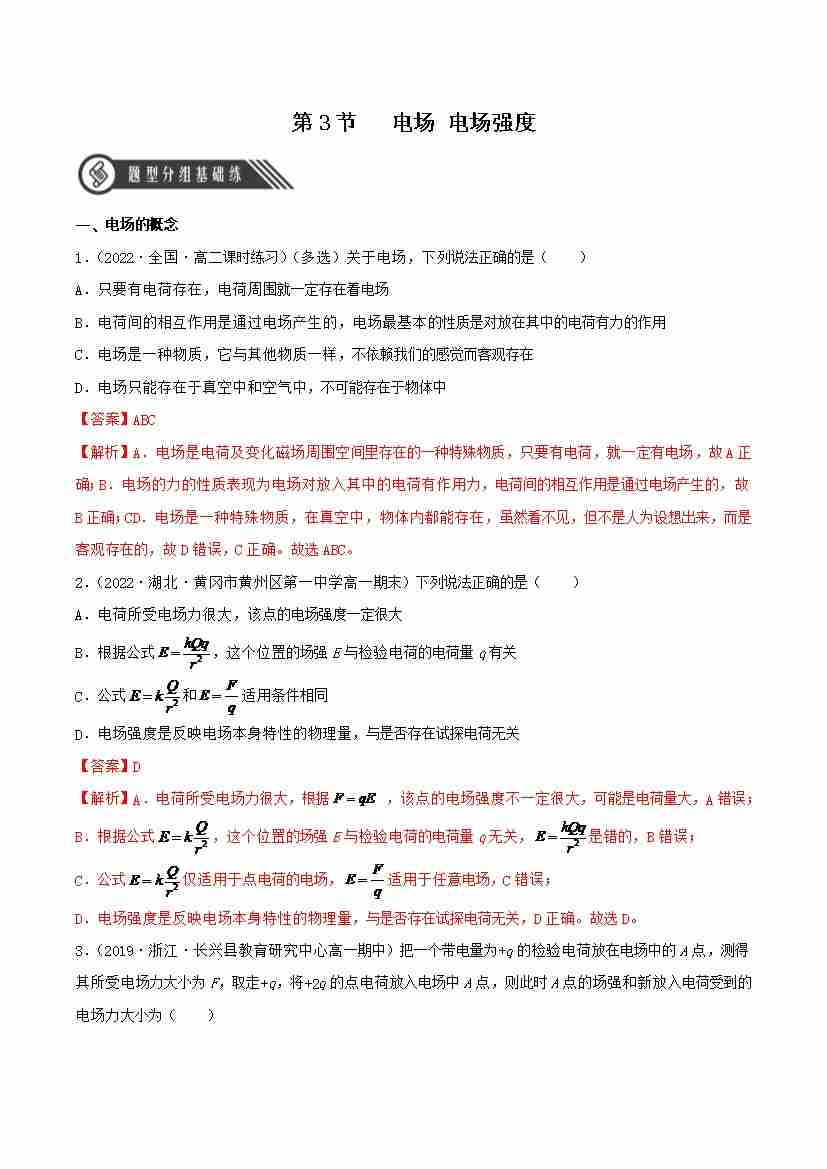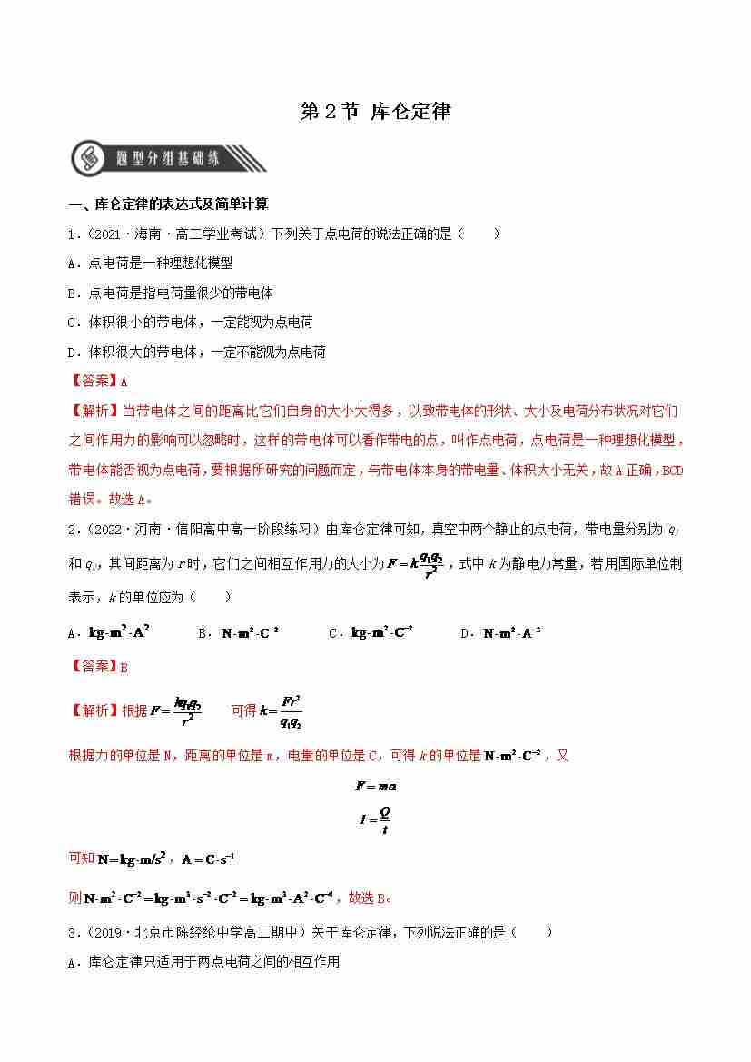 第9章 静电场及其应用(单元知识清单)(解析版)- (人教版2019必修第三册)(1)
