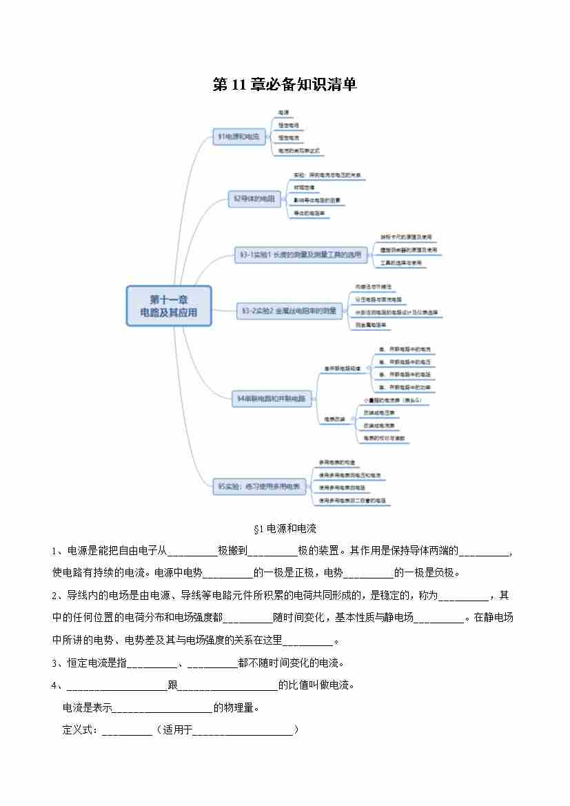 第11章 电路及其应用(单元知识清单)(原卷版)- (人教版2019必修第三册)