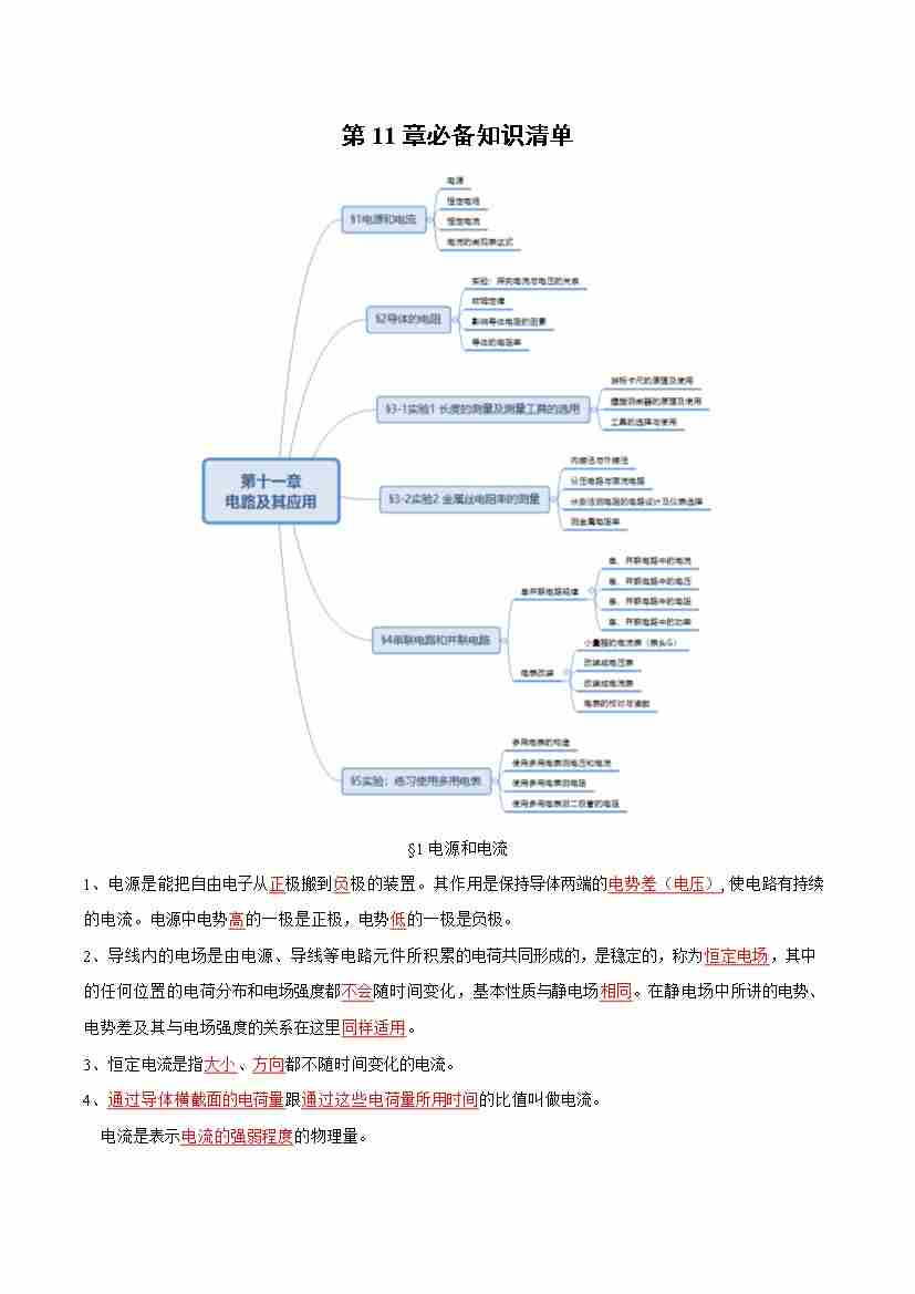 第11章 电路及其应用(单元知识清单)(解析版)- (人教版2019必修第三册)