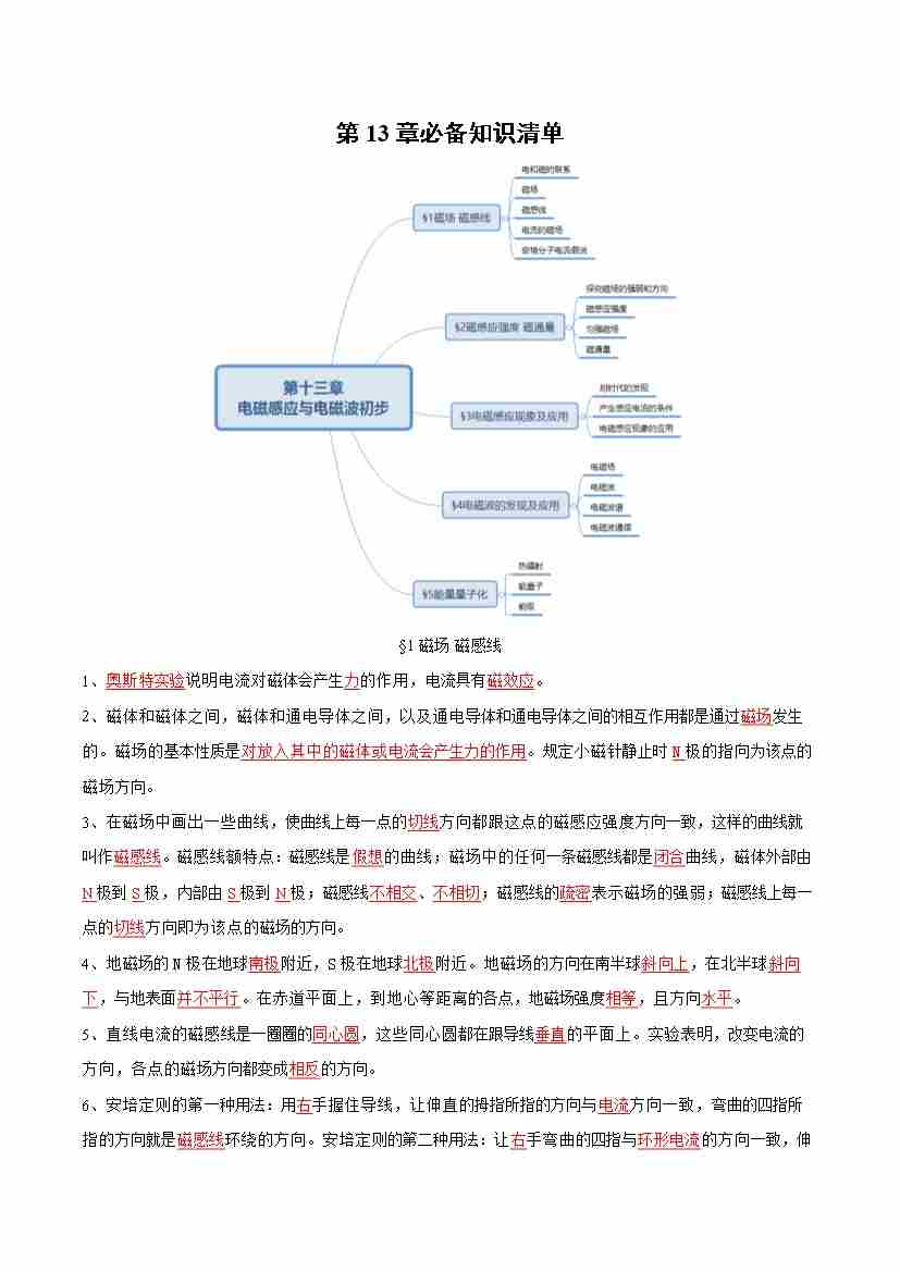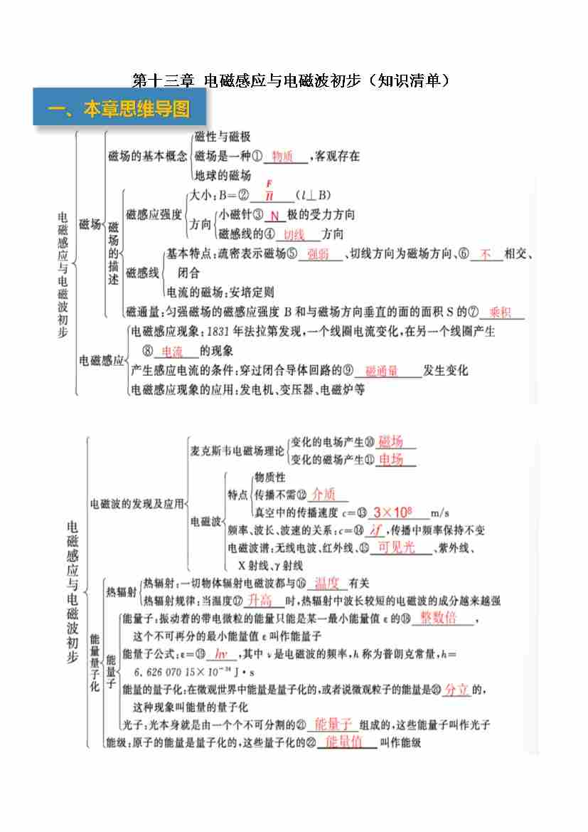 第十三章 电磁感应与电磁波初步(知识清单)(答案版)