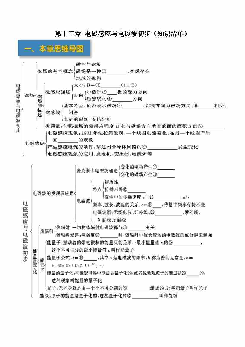 第十三章 电磁感应与电磁波初步(知识清单)(挖空版)