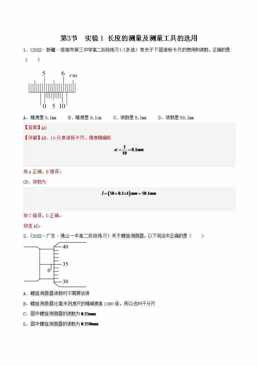 11.3 实验1 长度的测量及测量工具的选用(分层作业)(解析版)