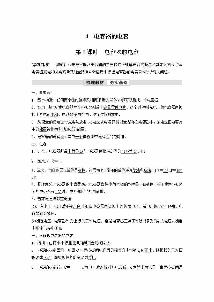 高中物理新教材同步 必修第三册 第10章 4 第1课时 电容器的电容
