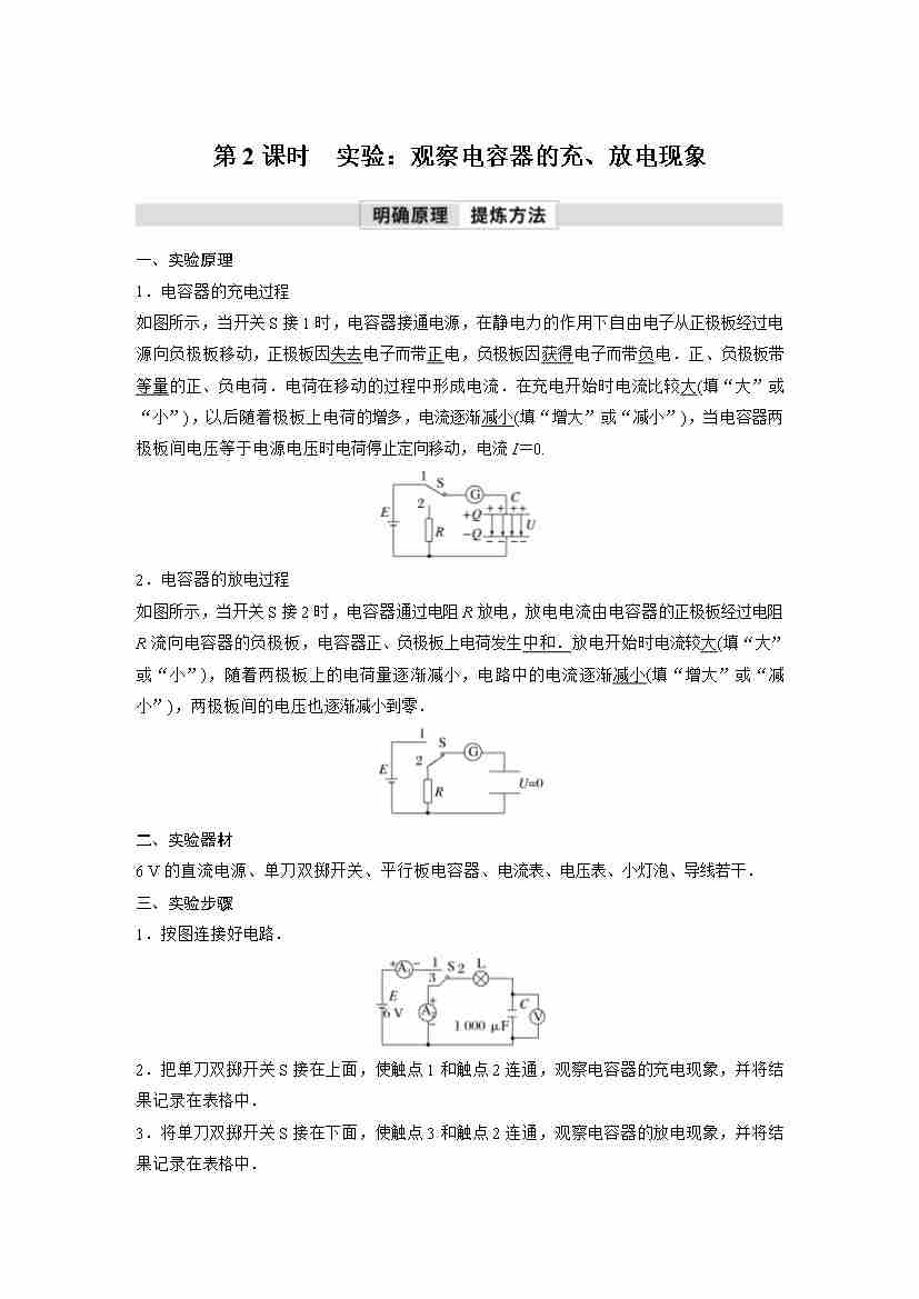 高中物理新教材同步 必修第三册 第10章 4 第2课时 实验:观察电容器的充、放电现象