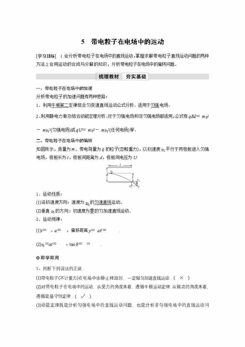 高中物理新教材同步 必修第三册 第10章 5 带电粒子在电场中的运动