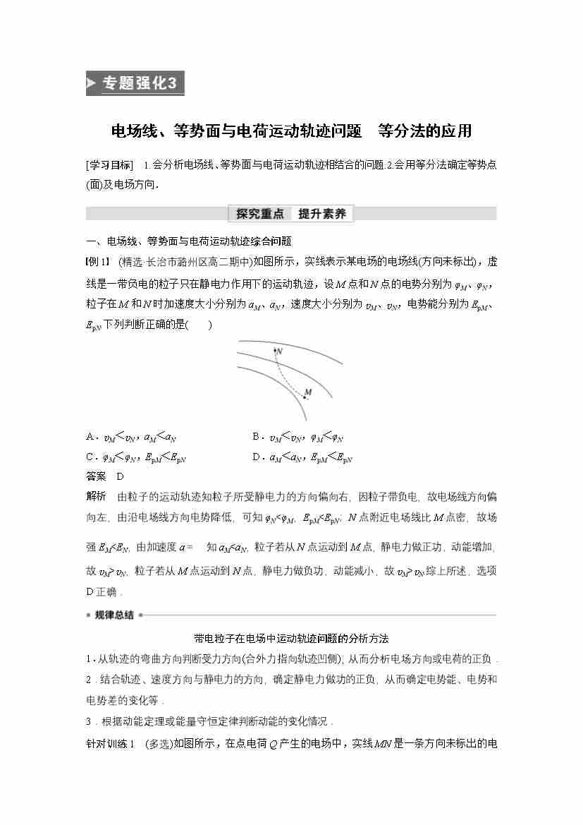 高中物理新教材同步 必修第三册 第10章 专题强化3 电场线、等势面与电荷运动轨迹问题 等分法的应用