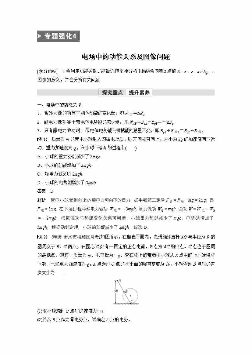高中物理新教材同步 必修第三册 第10章 专题强化4 电场中的功能关系及图像问题