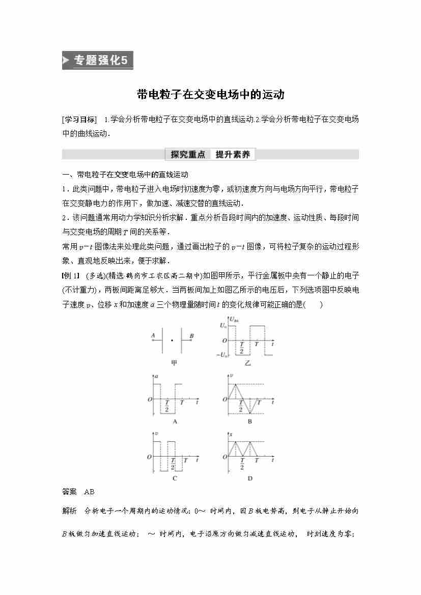 高中物理新教材同步 必修第三册 第10章 专题强化5 带电粒子在交变电场中的运动