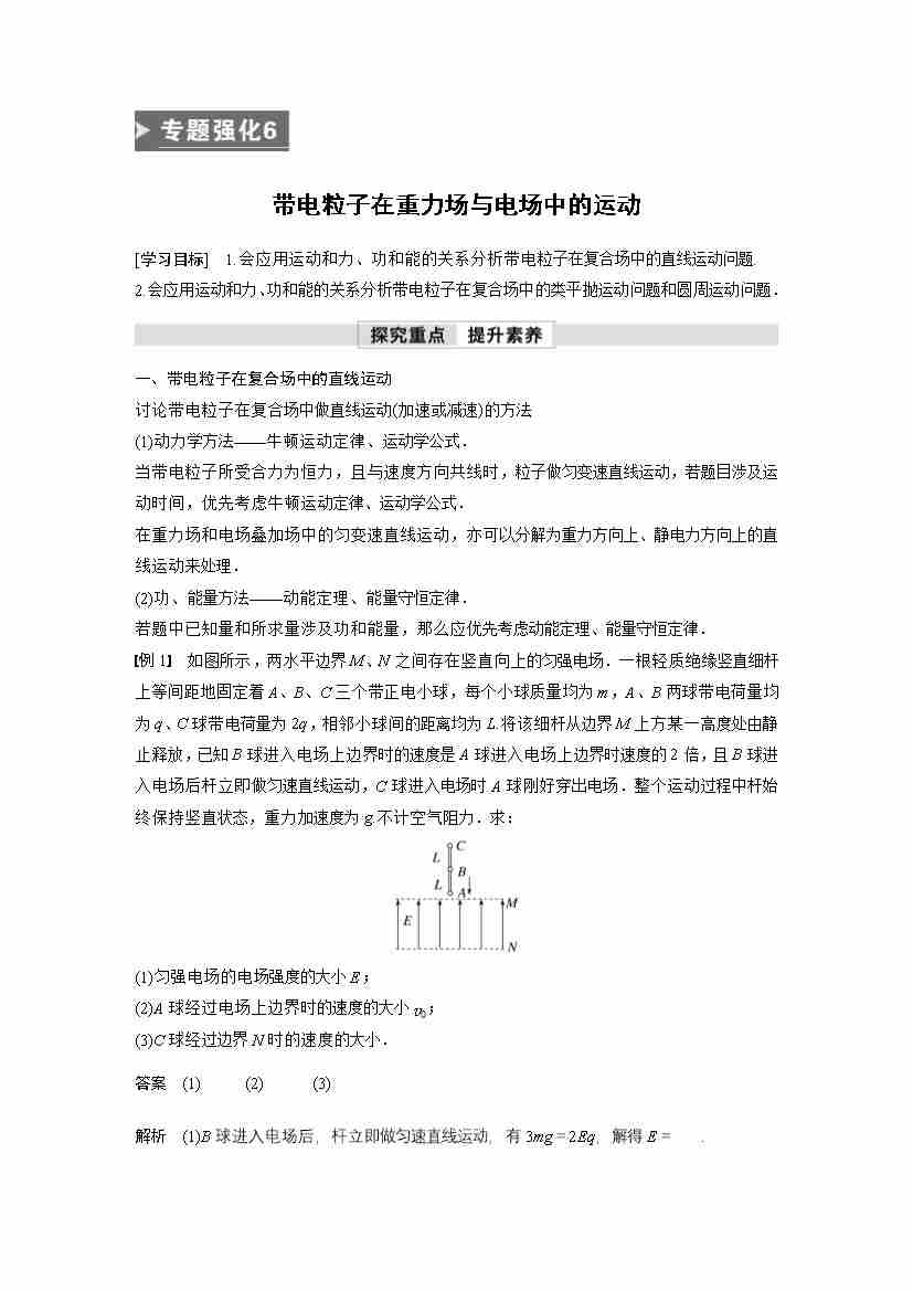 高中物理新教材同步 必修第三册 第10章 专题强化6 带电粒子在重力场与电场中的运动