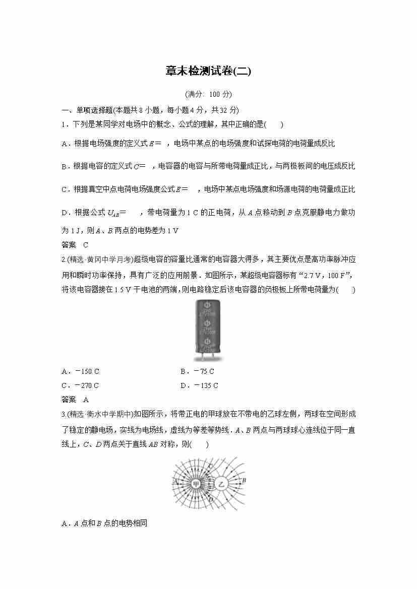 高中物理新教材同步 必修第三册 第10章 章末检测试卷(二)