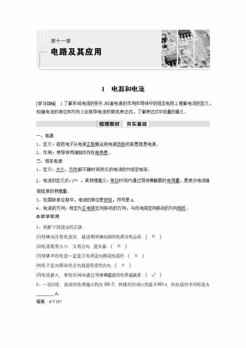 高中物理新教材同步 必修第三册 第11章 1 电源和电流