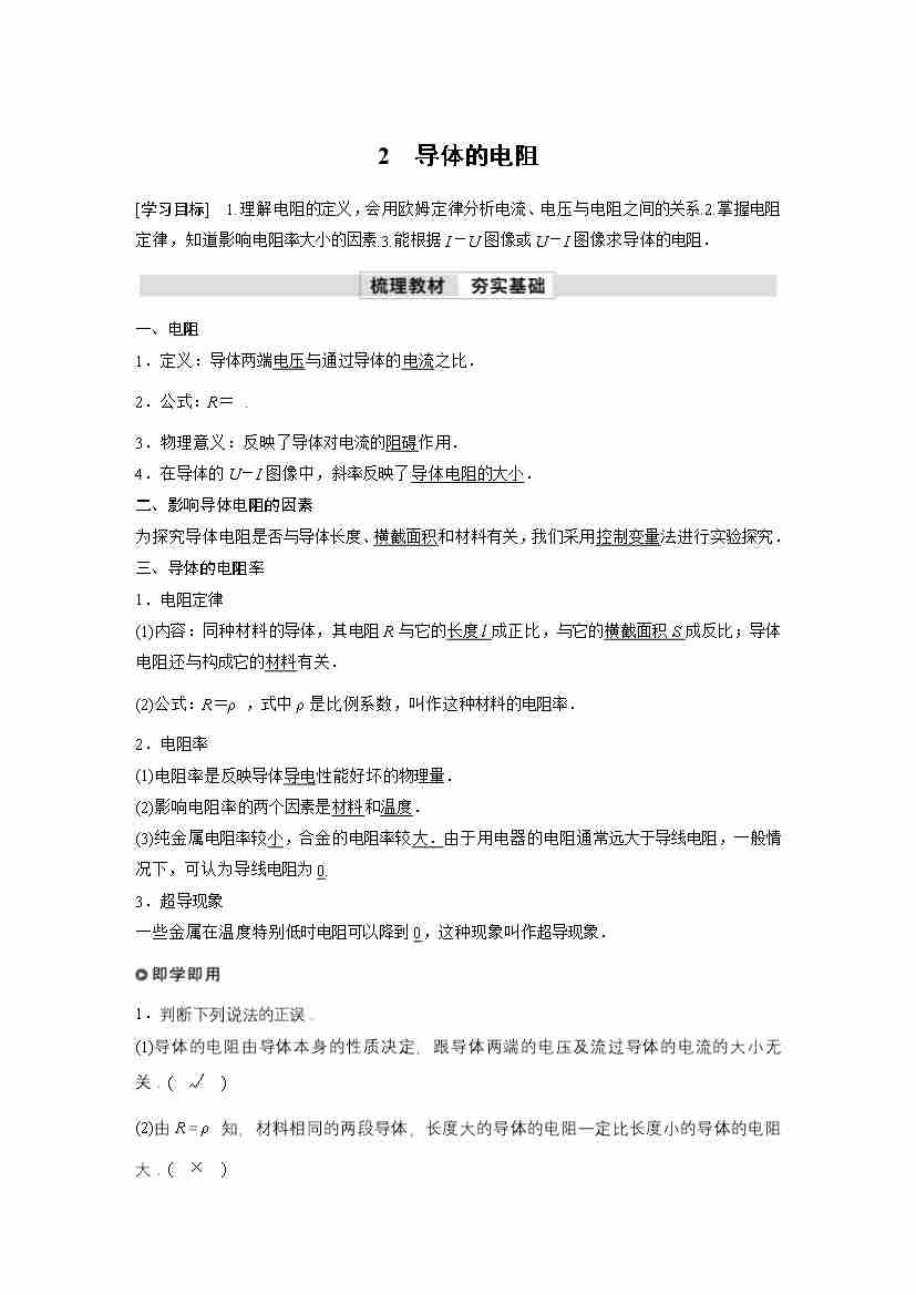 高中物理新教材同步 必修第三册 第11章 2 导体的电阻