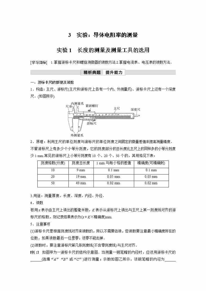 高中物理新教材同步 必修第三册 第11章 3 实验1 长度的测量及测量工具的选用