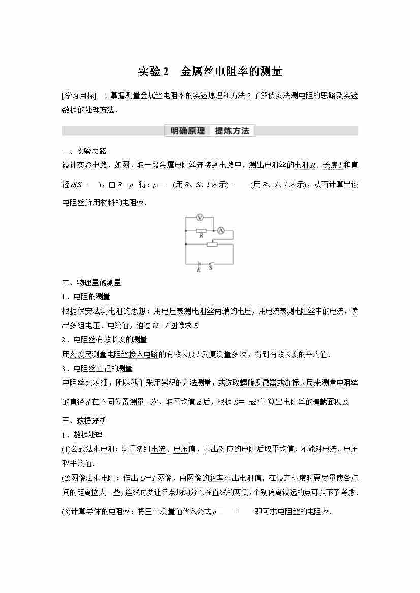 高中物理新教材同步 必修第三册 第11章 3 实验2 金属丝电阻率的测量