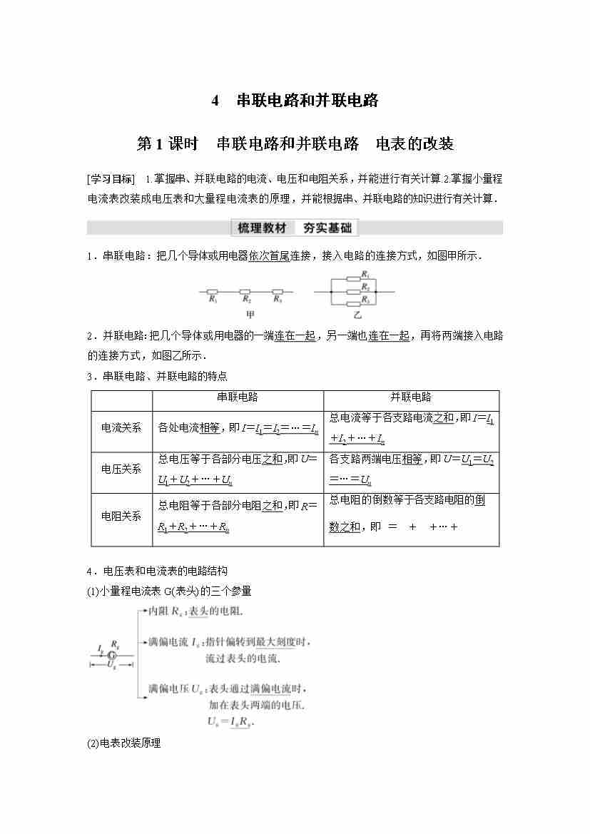 高中物理新教材同步 必修第三册 第11章 4 第1课时 串联电路和并联电路 电表的改装