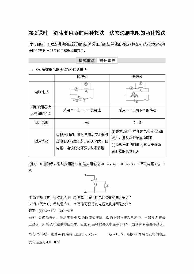 高中物理新教材同步 必修第三册 第11章 4 第2课时 滑动变阻器的两种接法 伏安法测电阻的两种接法