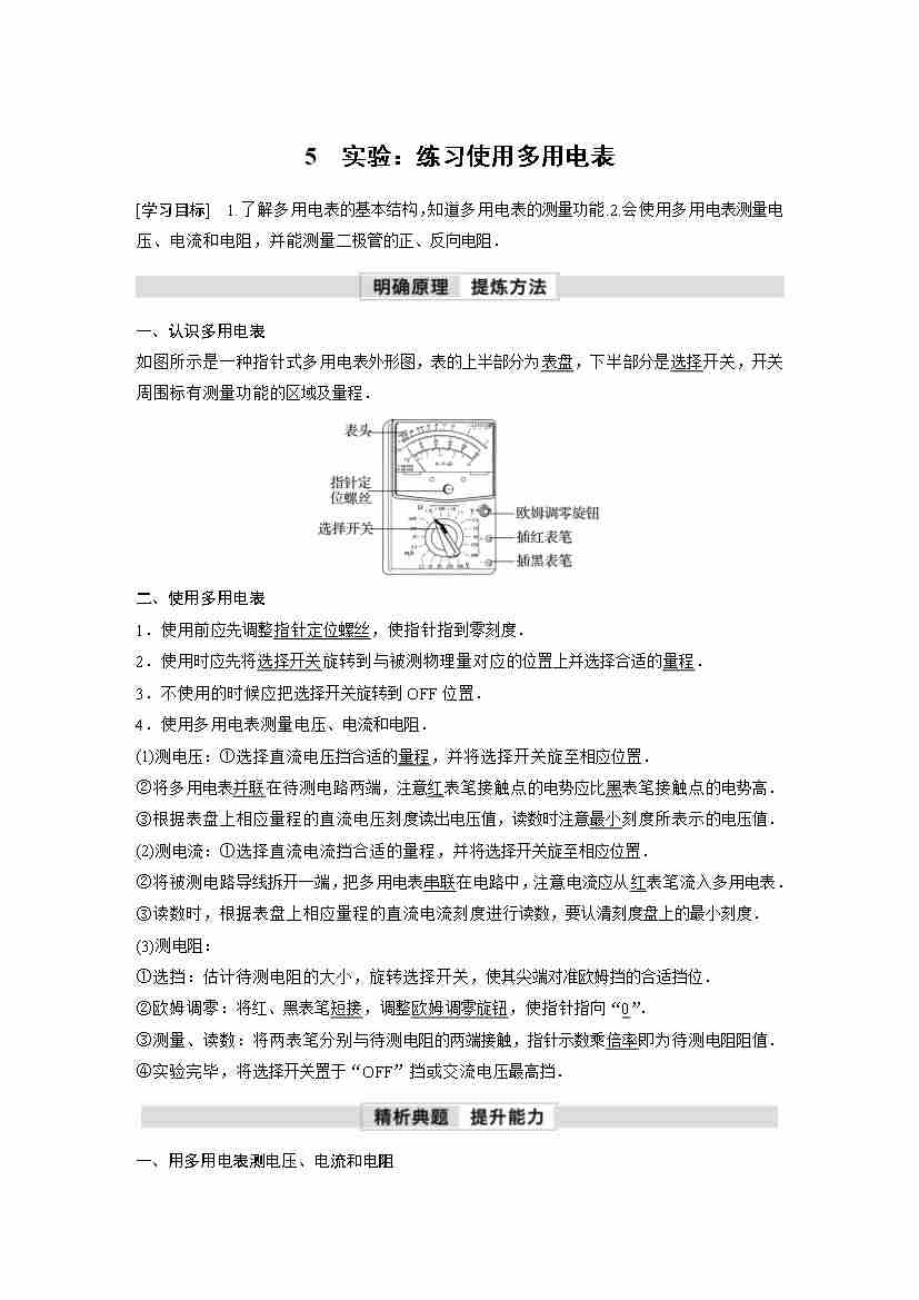 高中物理新教材同步 必修第三册 第11章 5 实验:练习使用多用电表