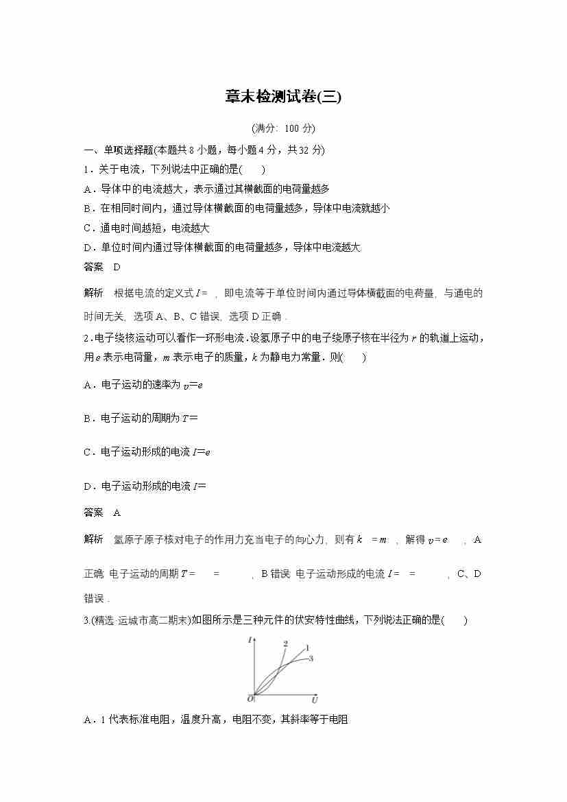 高中物理新教材同步 必修第三册 第11章 章末检测试卷(三)