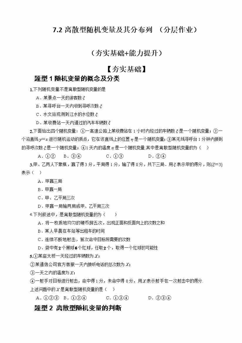 7.2离散型随机变量及其分布列 (分层作业)(原卷版)