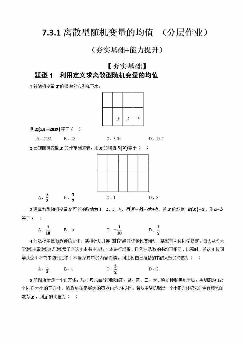 7.3.1离散型随机变量的均值(分层作业)(原卷版)