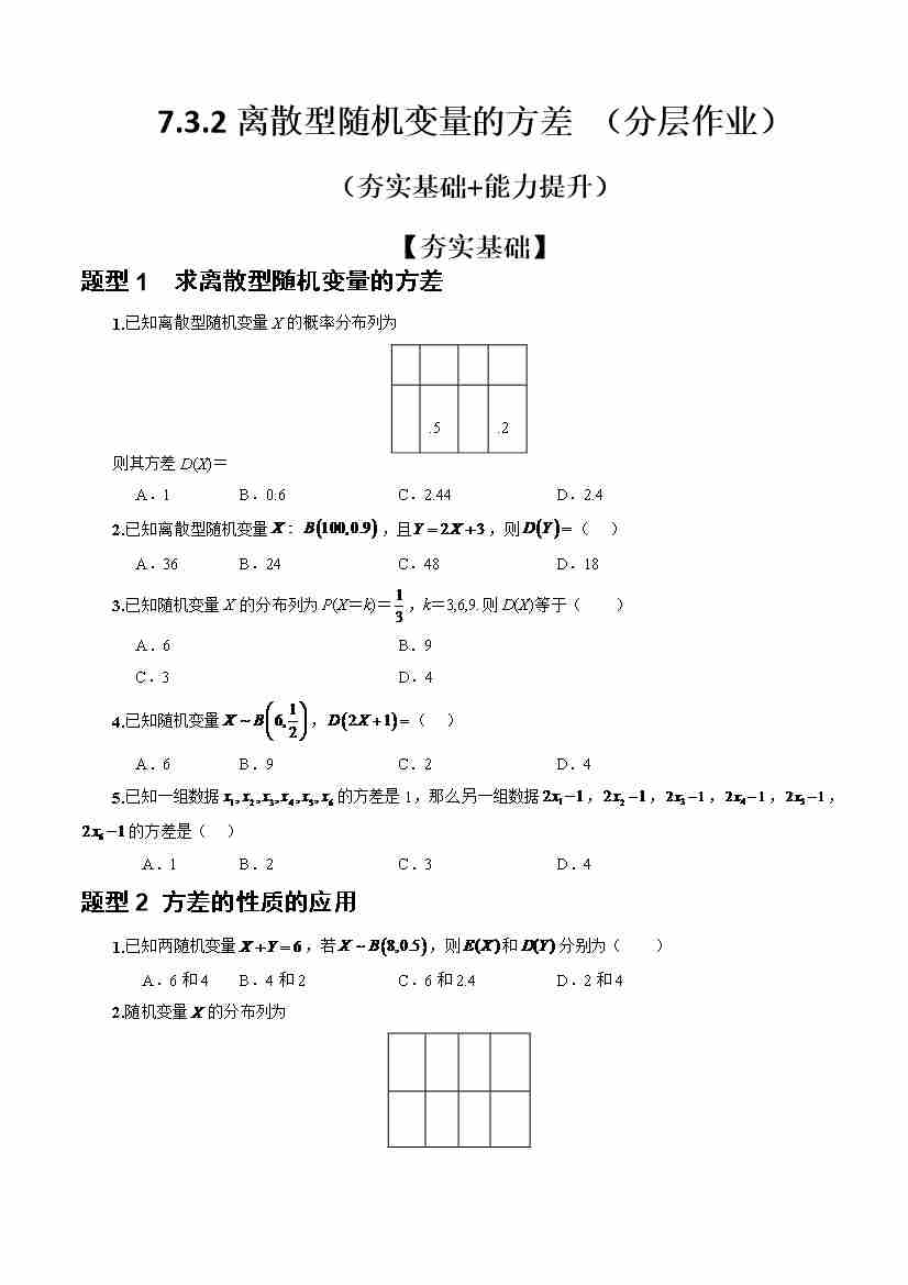 7.3.2离散型随机变量的方差 (分层作业)(原卷版)