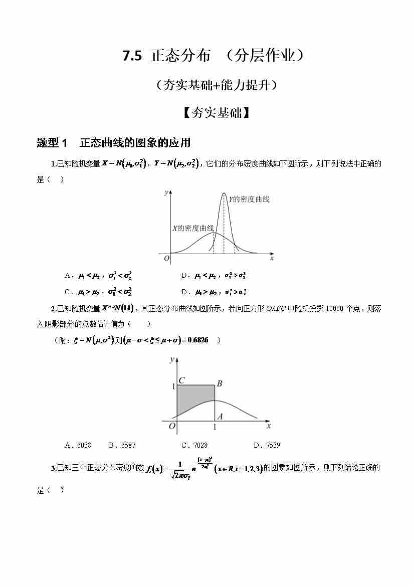 7.5 正态分布 (分层作业)(原卷版)
