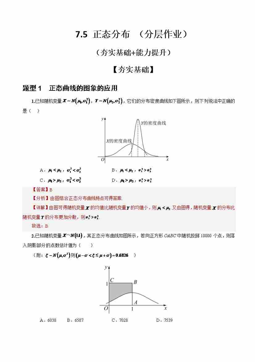 7.5 正态分布 (分层作业)(解析版)