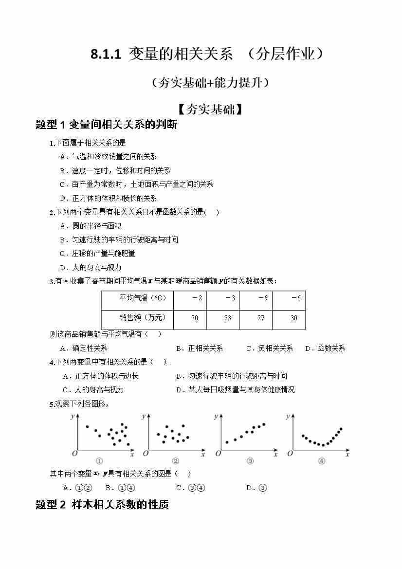 8.1.1 变量的相关关系(分层作业)(原卷版)