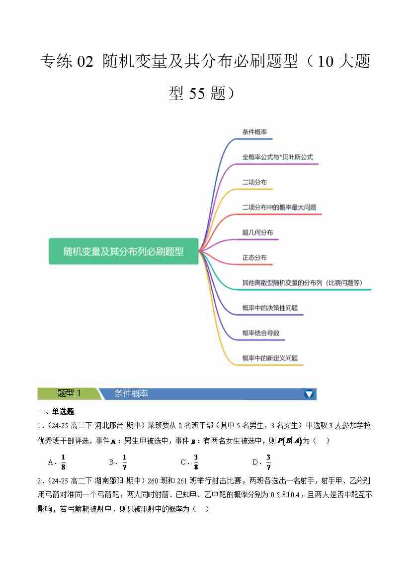 专练02 (最新好题速递)随机变量及其分布必刷题型(10大题型55题)学生版