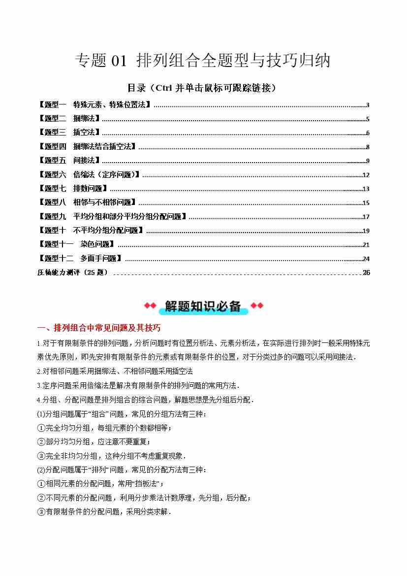 专题01 排列组合全题型与技巧归纳(12大压轴考法)学生版