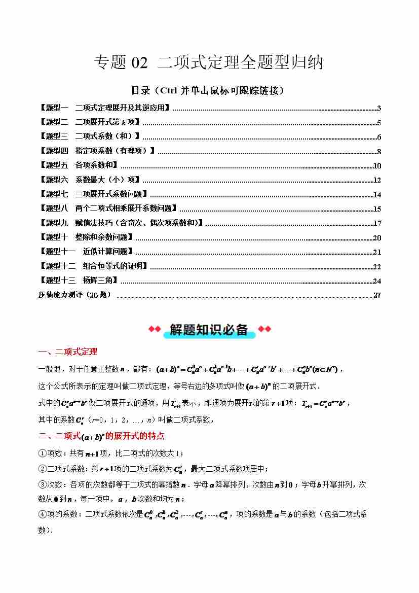 专题02 二项式定理全题型归纳(13大压轴考法)学生版