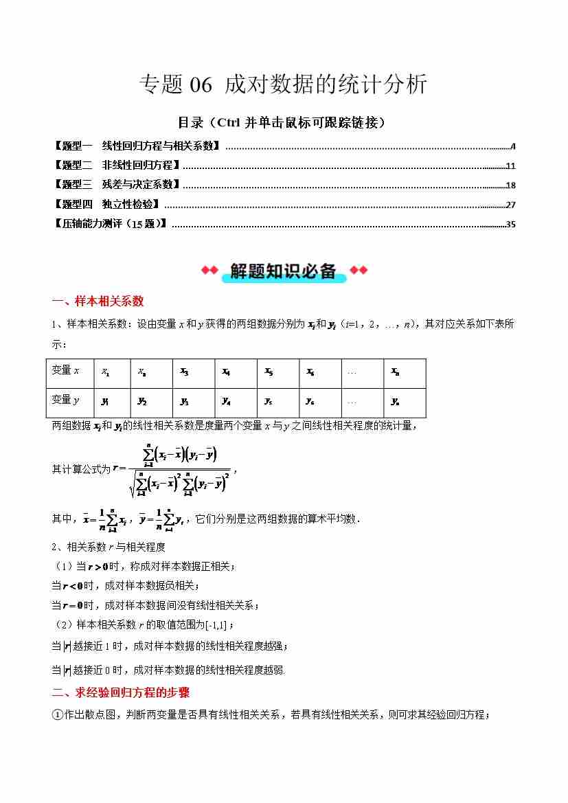 专题06 成对数据的统计分析(4大压轴考法)教师版