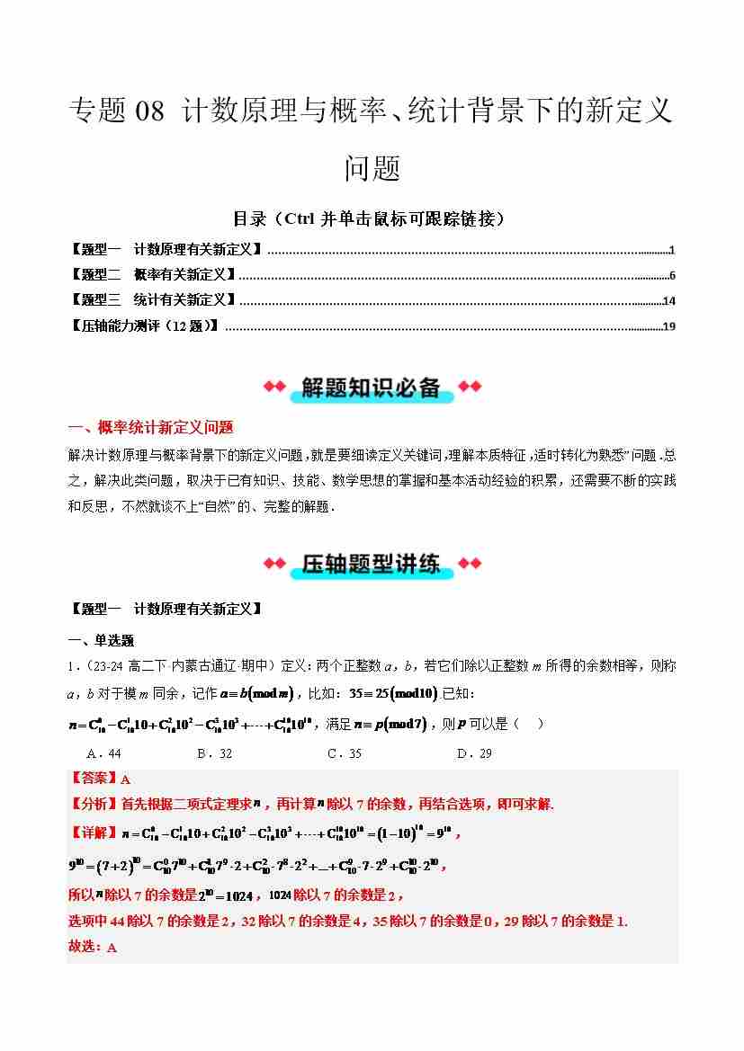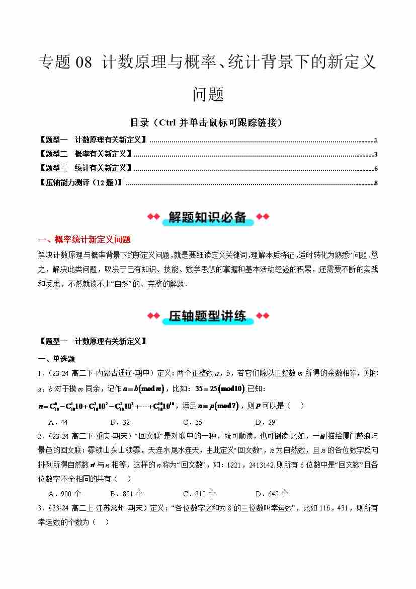 专题08 计数原理与概率、统计背景下的新定义问题(3大压轴考法)学生版