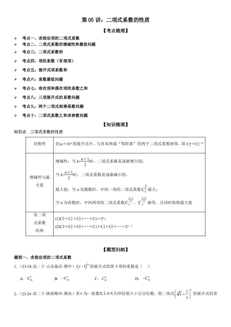 专题6.3 二项式定理(十一大题型)(举一反三)(人教A版2019选择性必修第三册)(学生版)