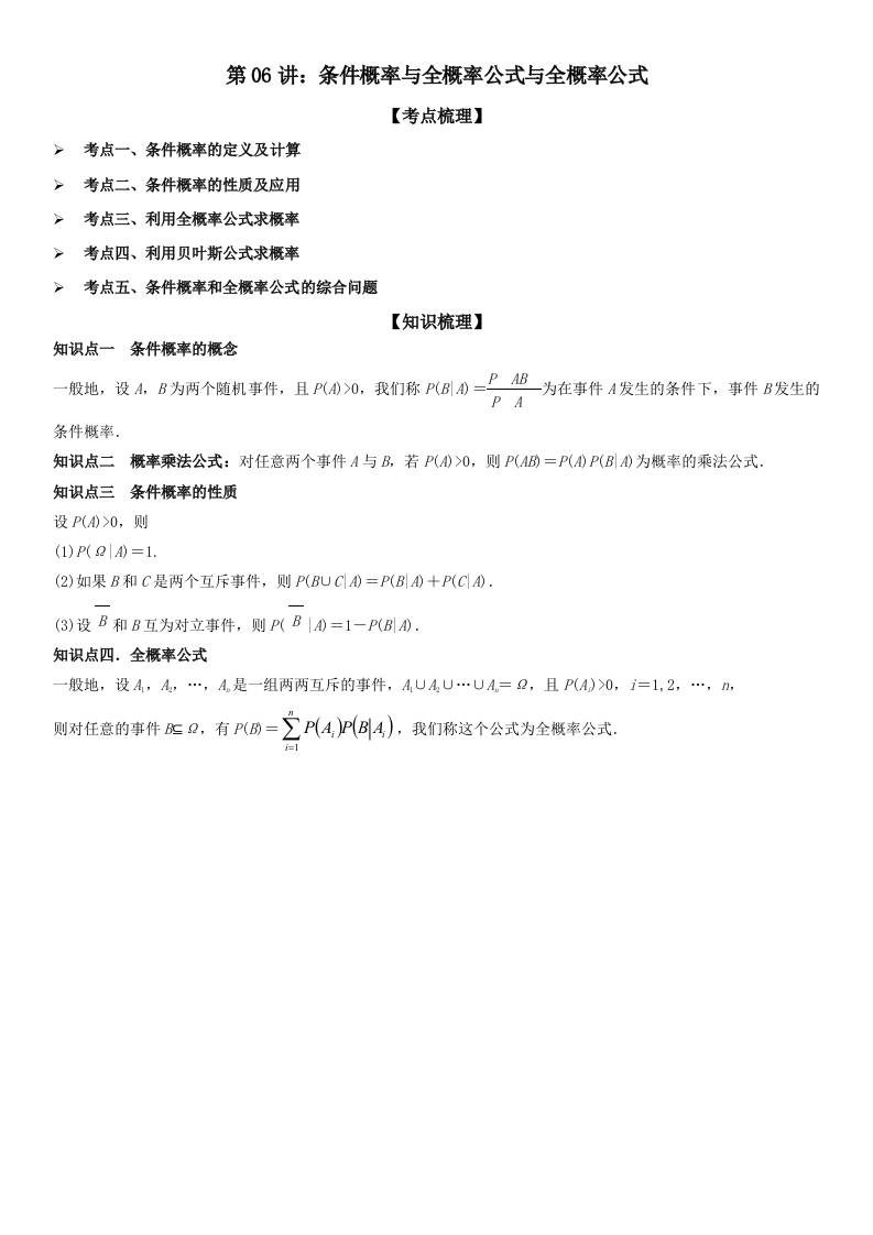 第06讲:条件概率与全概率公式与全概率公式 学生版