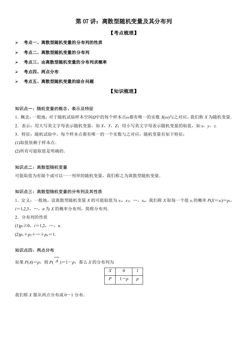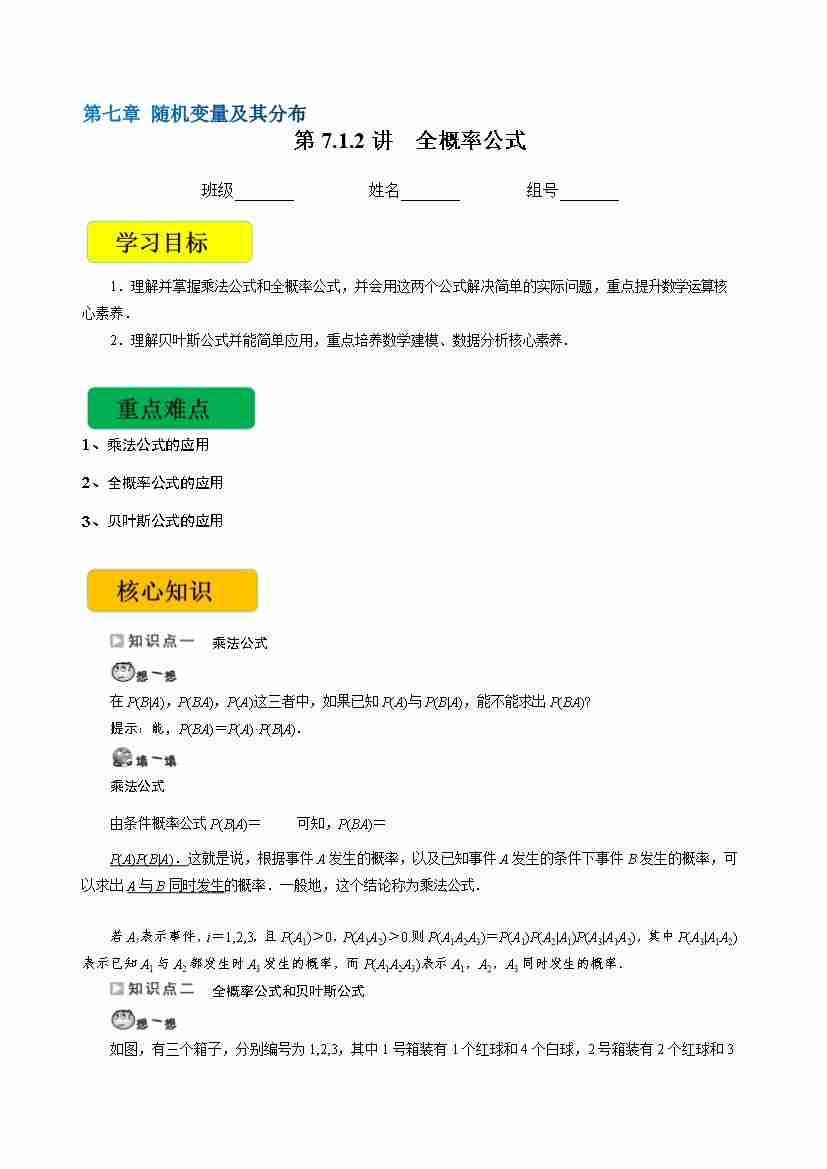 第7.1.2讲 全概率公式(学生版)人教A版选修第三册)