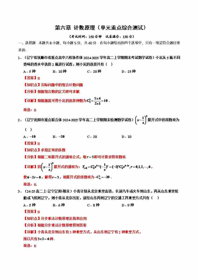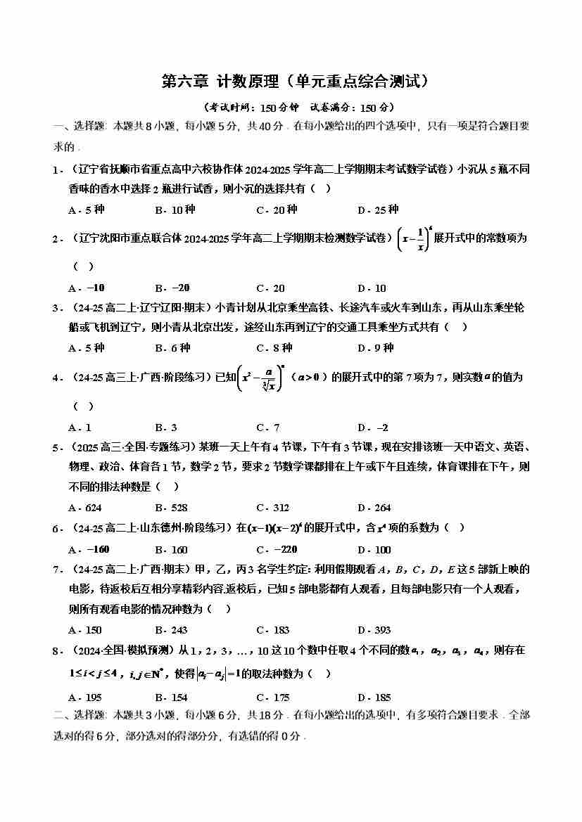 第六章 计数原理(单元重点综合测试)(学生版)