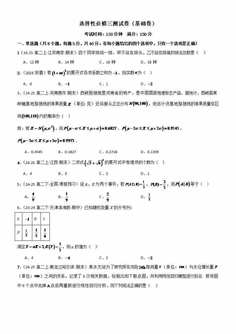 选择性必修三测试卷(基础卷)(学生版)