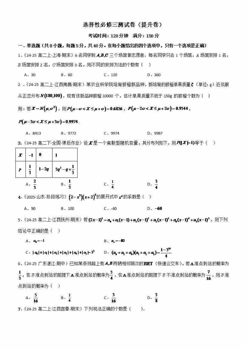 选择性必修三测试卷(提升卷)(学生版)