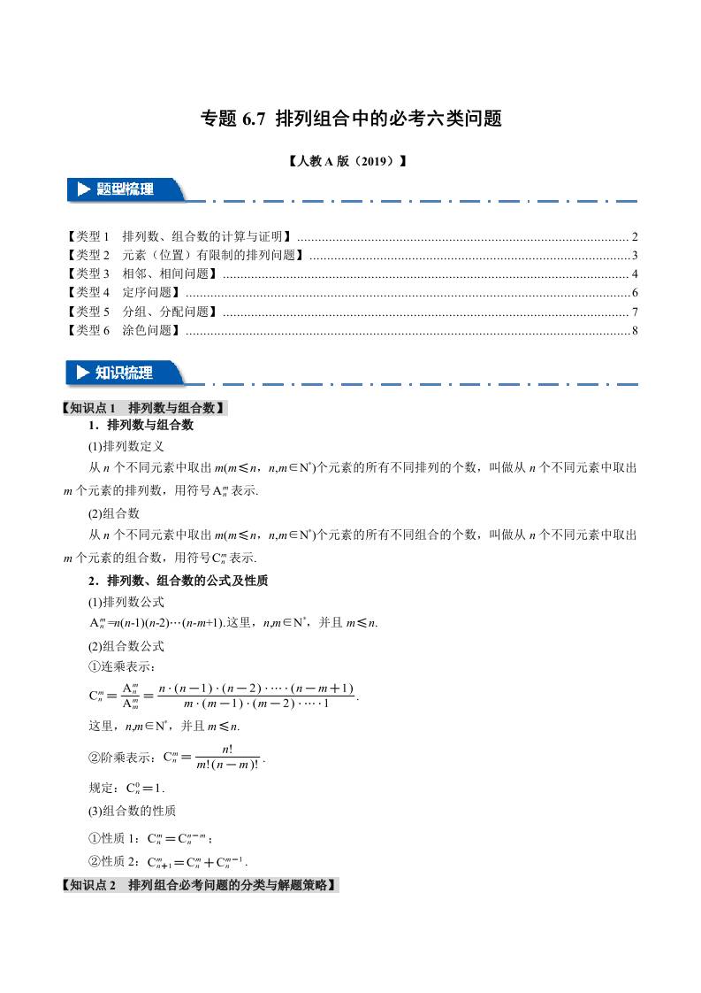 专题6.7 排列组合中的必考六类问题(举一反三)(人教A版2019选择性必修第三册)(学生版)