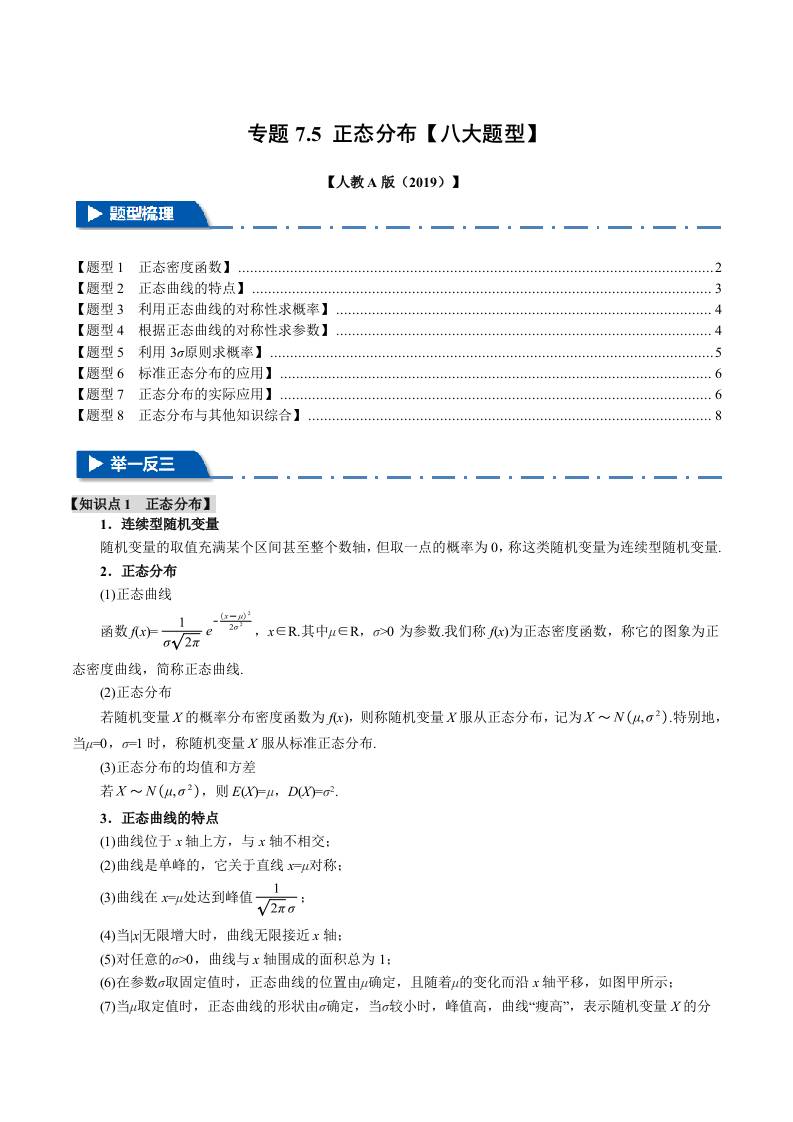 专题7.5 正态分布(八大题型)(举一反三)(人教A版2019选择性必修第三册)(教师版)