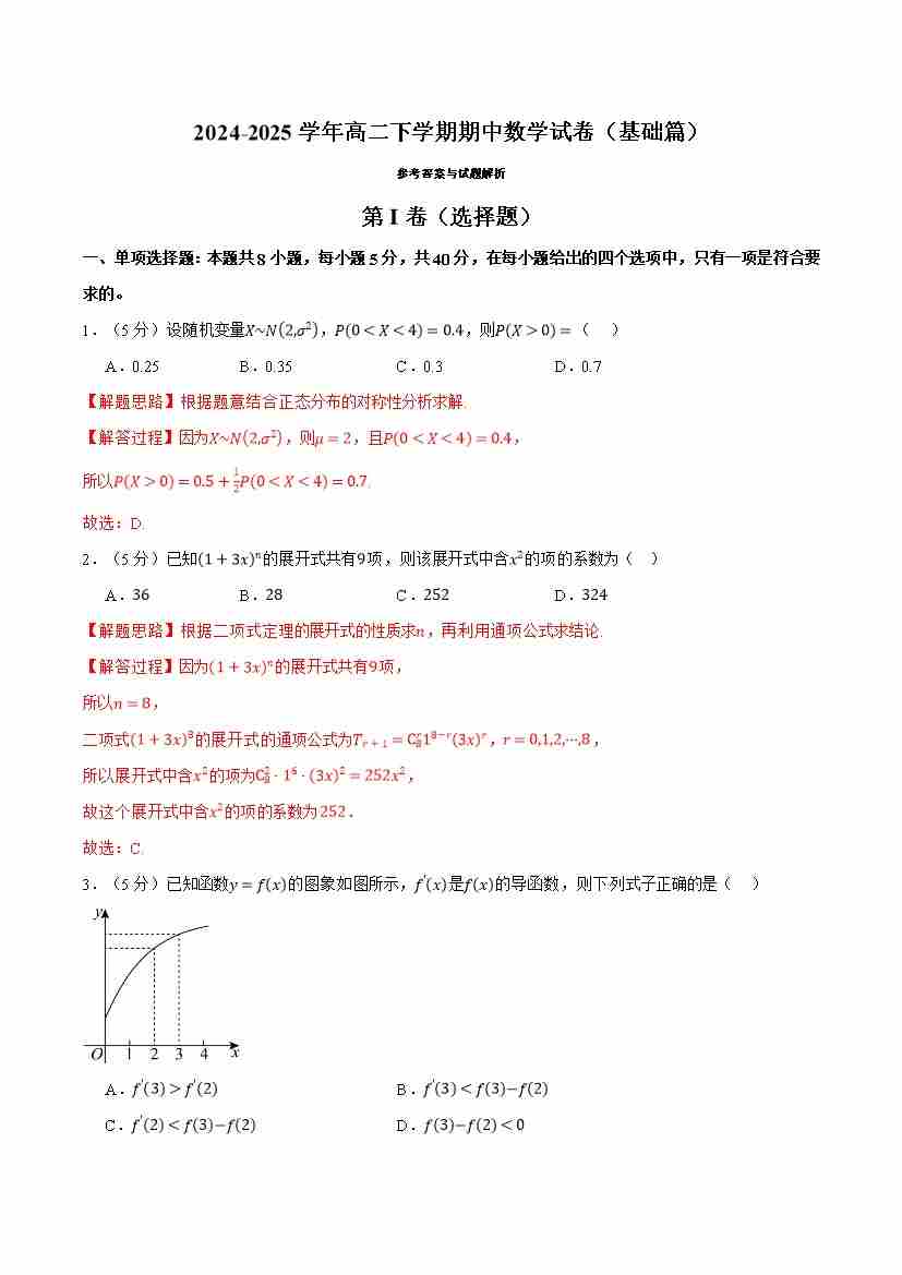 高二下学期期中数学试卷(基础篇)(教师版)